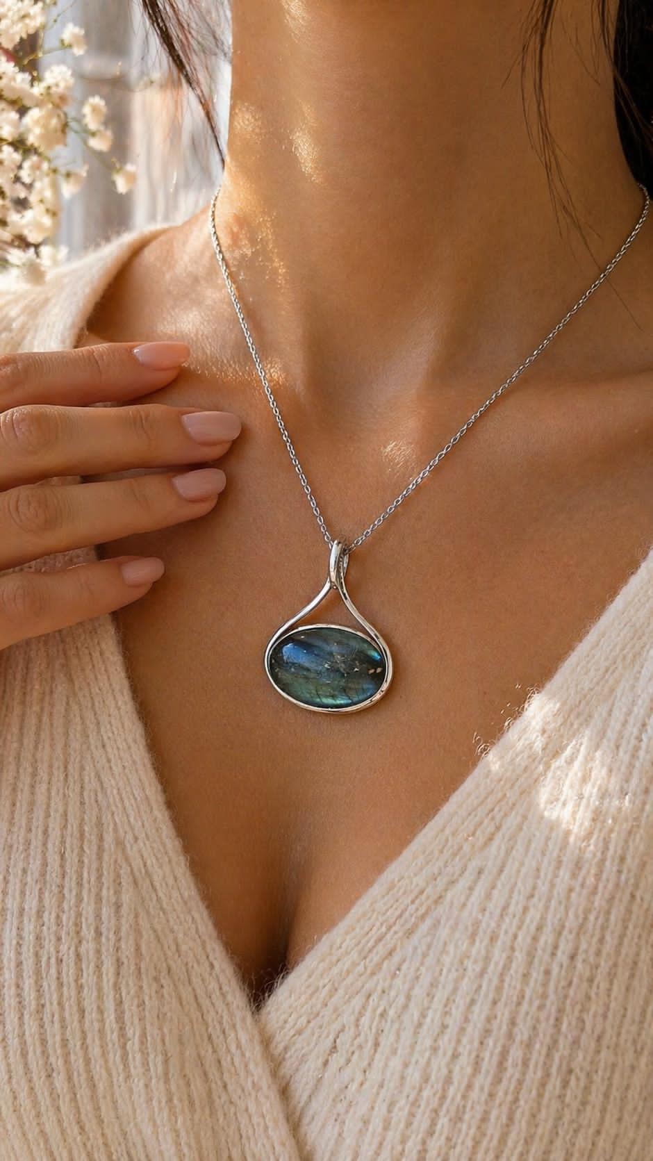 Labrodanit Taşlı Kolye