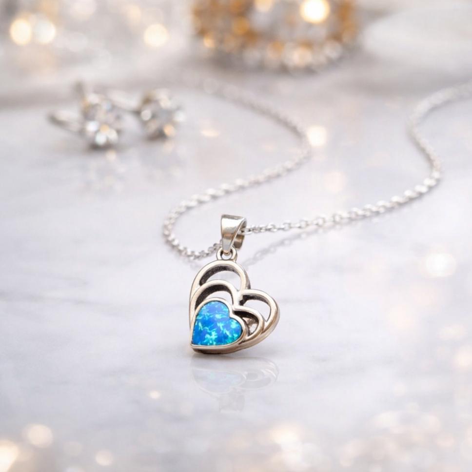 Opal Taşlı Kalp Kolye