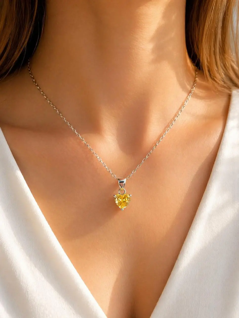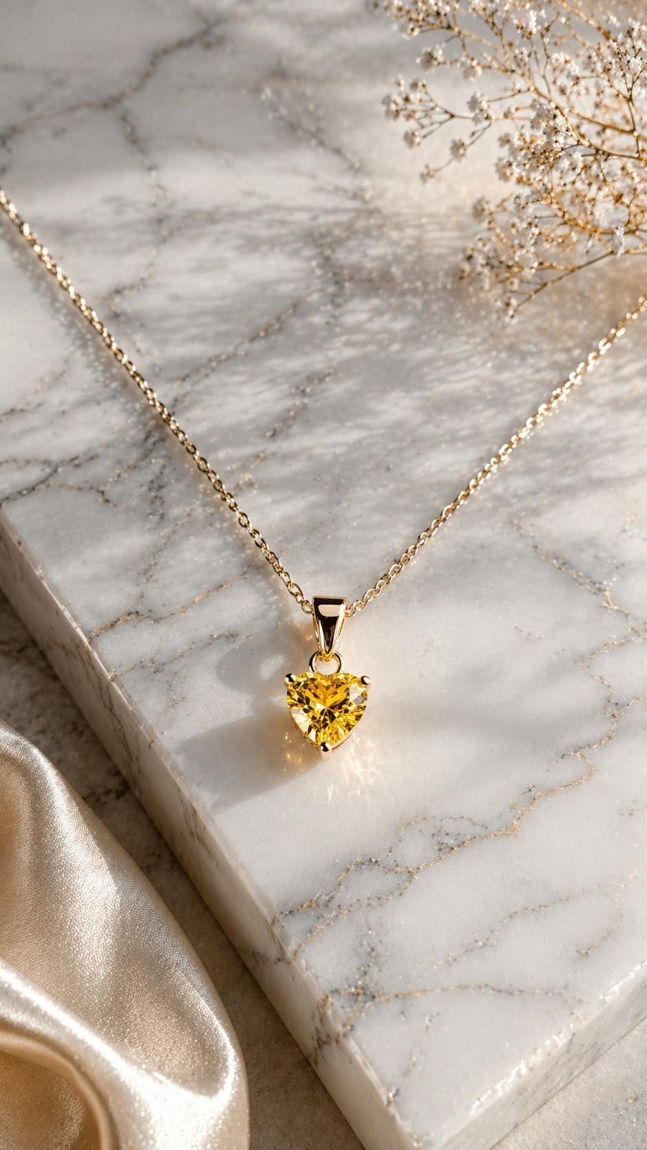 Sitrin Taşlı Kolye Kalp Kolye