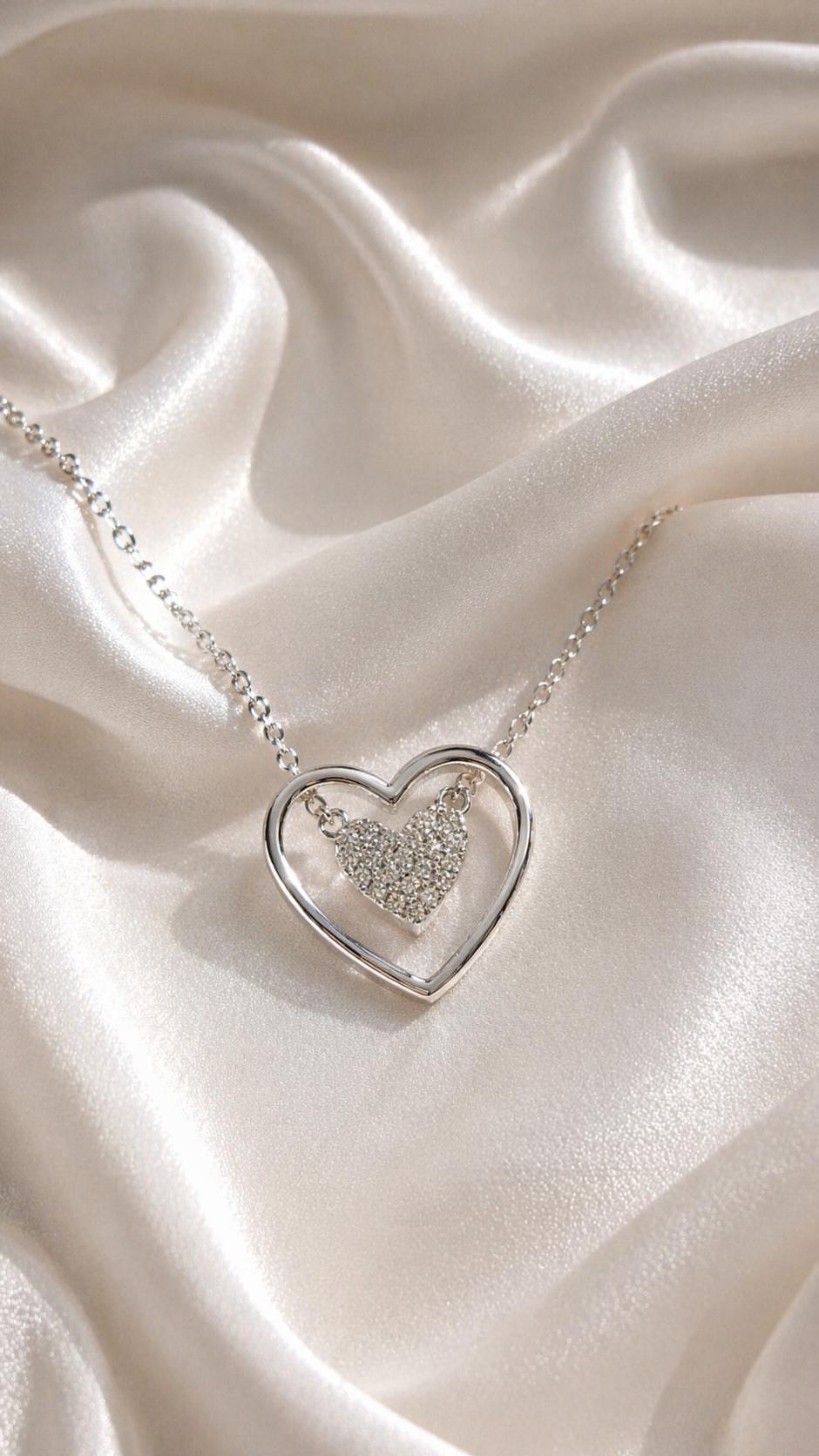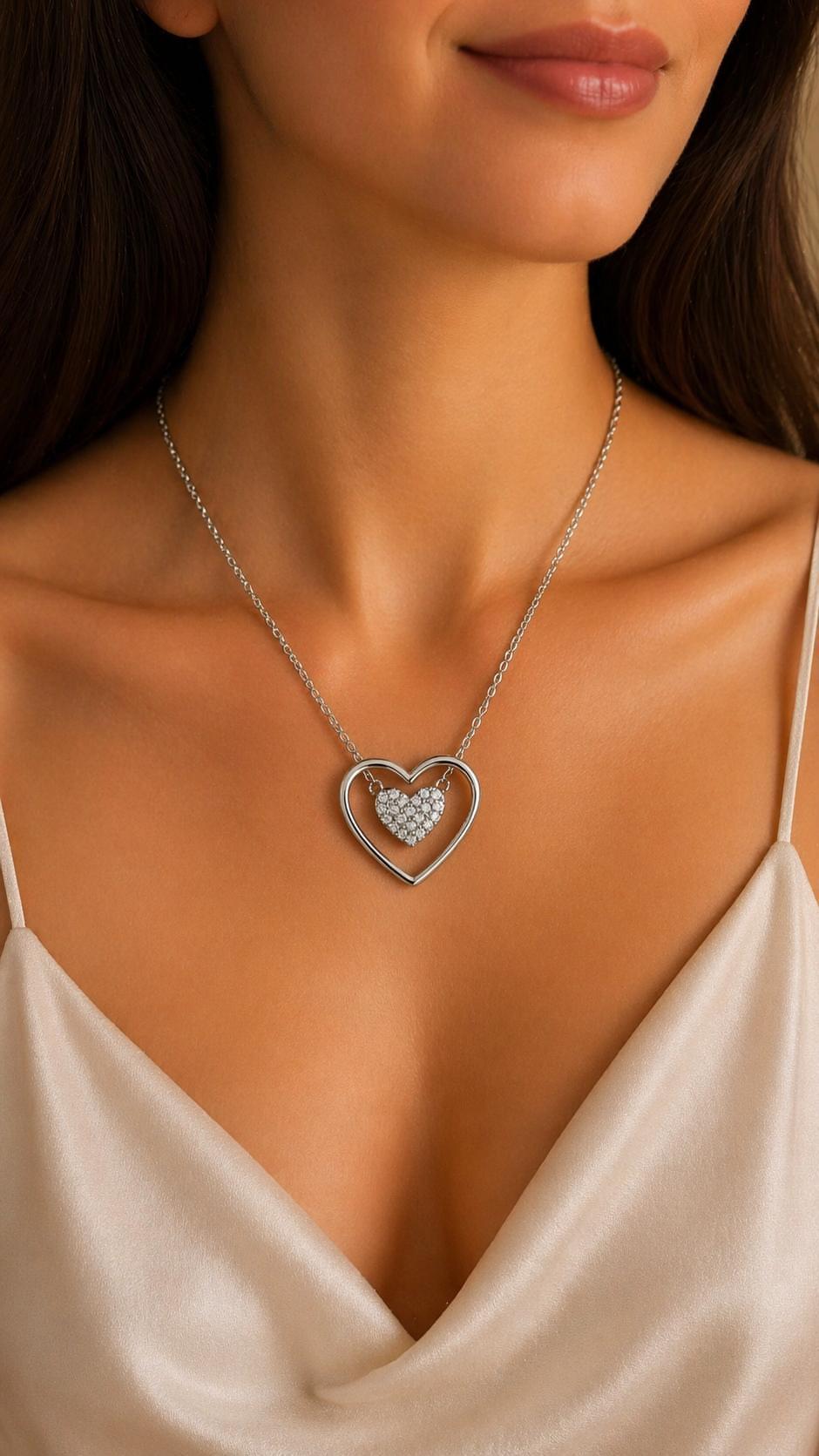 Taşlı Çift Kalp Kolye